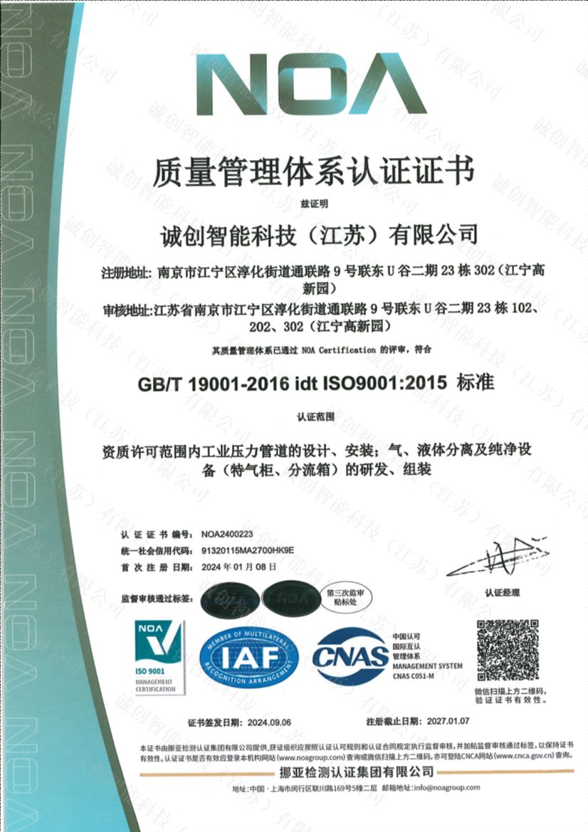 ISO9001質量管理體系認證證書