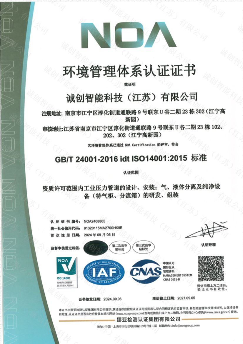 ISO14001環境管理體系認證證書