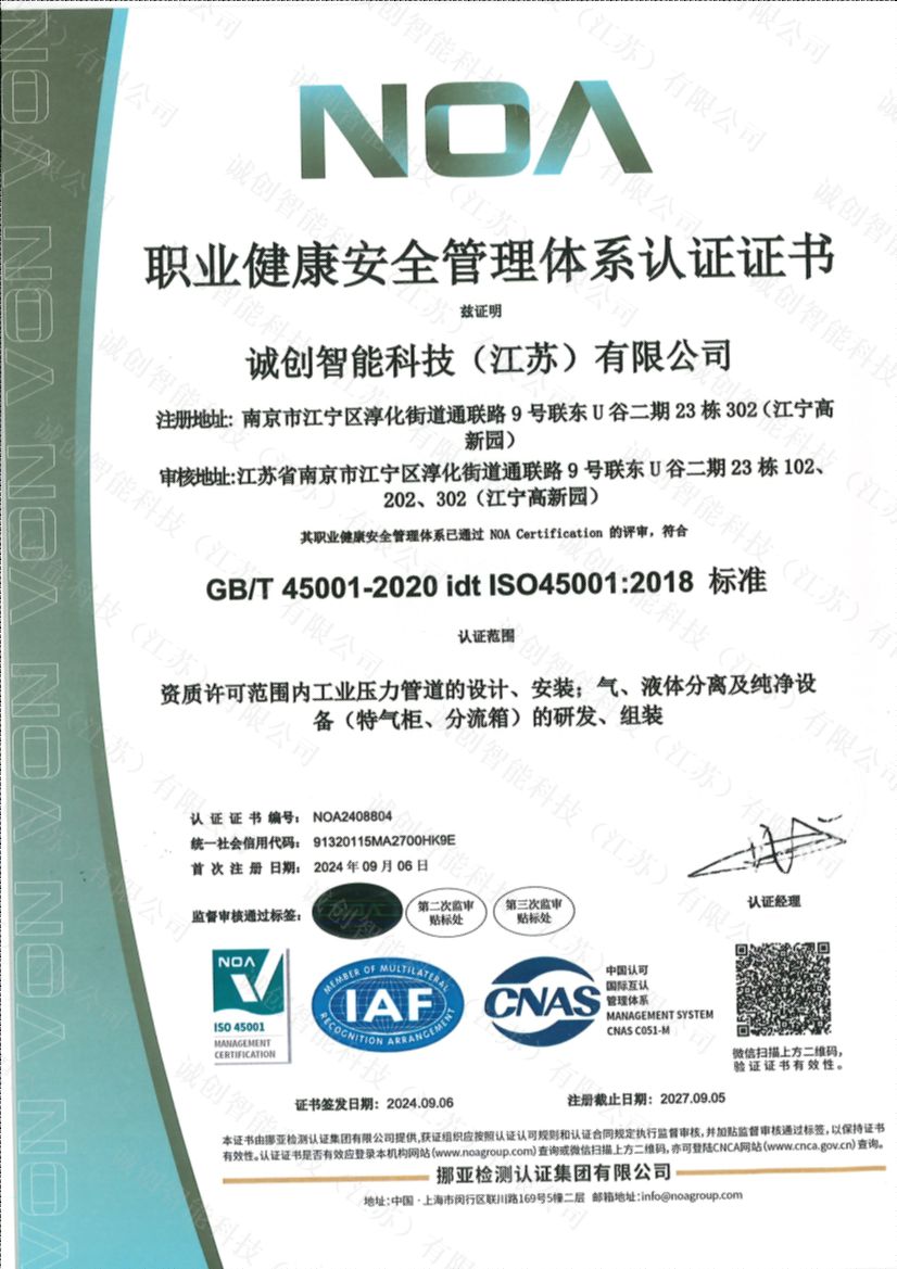ISO45001職業健康安全管理體系證書