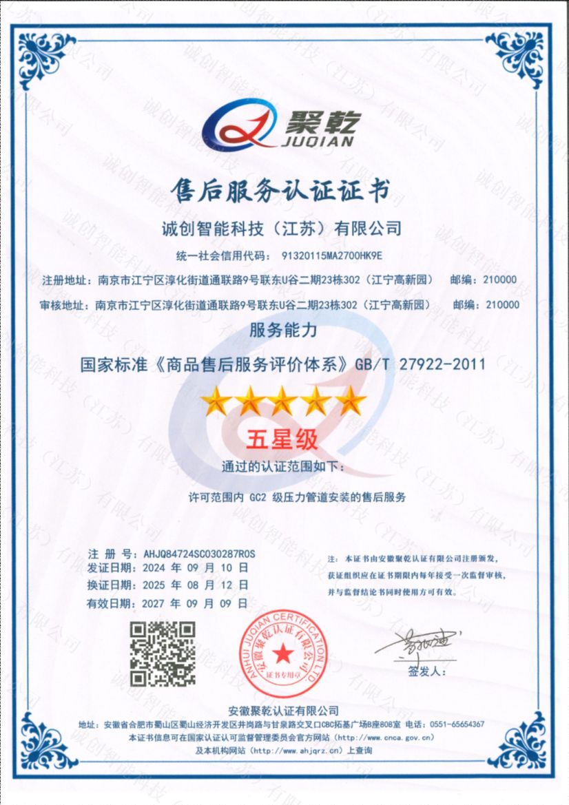 五星級售后服務認證證書