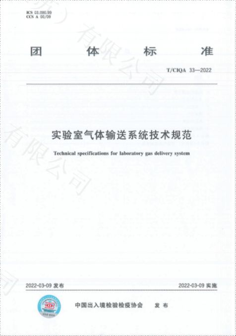 《實驗室氣體輸送系統技術規范》T/CIQA33-2022集中供氣標準編寫單位