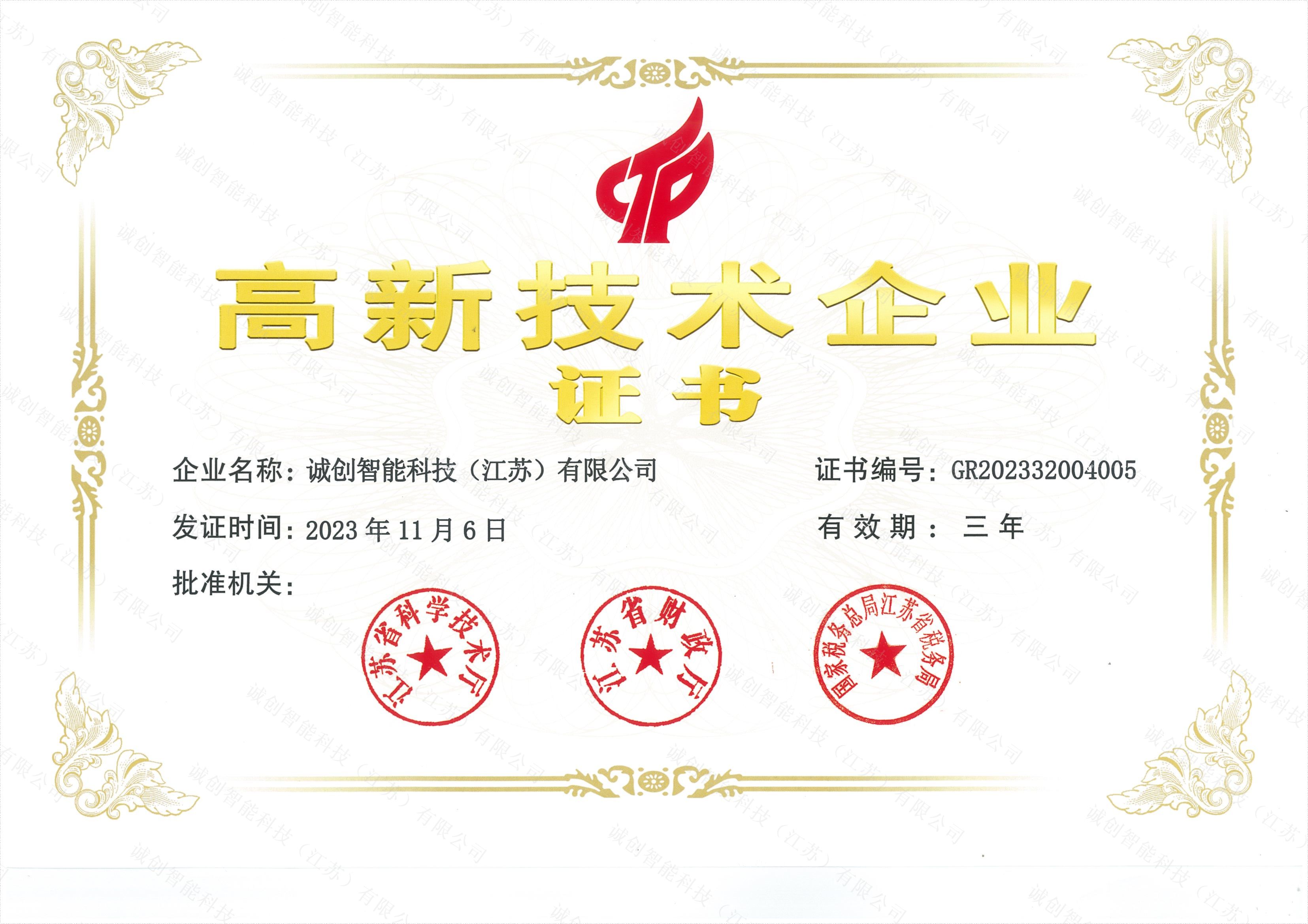 高新技術企業證書